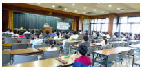 「おはようございます」の元気な声で始まり、下司先生の「そろばんのおもしろさ」の話に、みな真剣に聞き入りました。そして、「なにごとにおいても目標をもって一歩一歩前進することを心がけて努力していきましょう」の言葉で、参加者は集中力を一気に高めました。