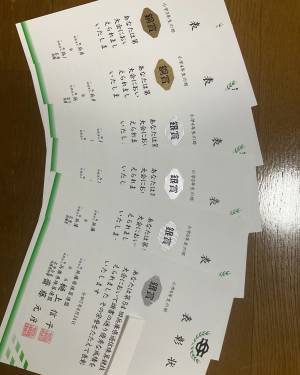 各教室の成績を集計して 金銀銅賞を決定し 賞状を渡しました